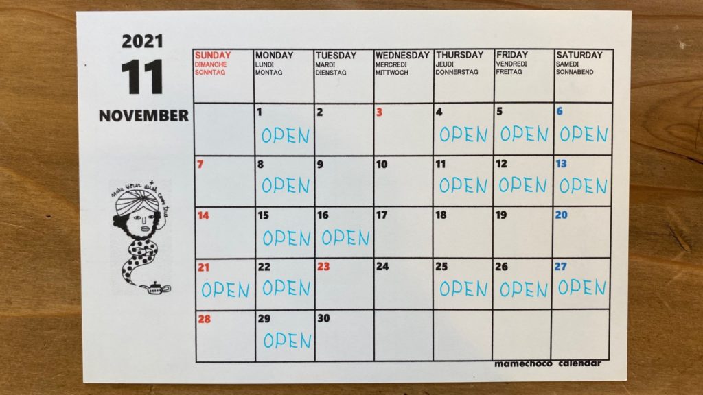 1年がとてつもなく早くて11月なのが信じられませんが11月の営業スケジュールです!笑